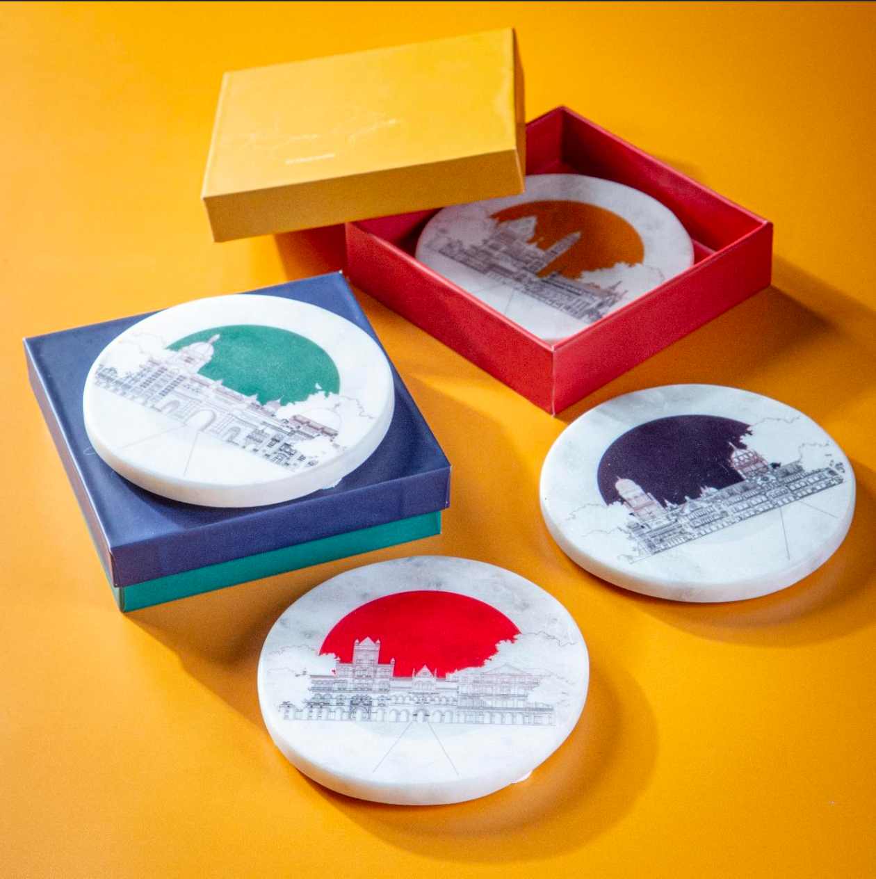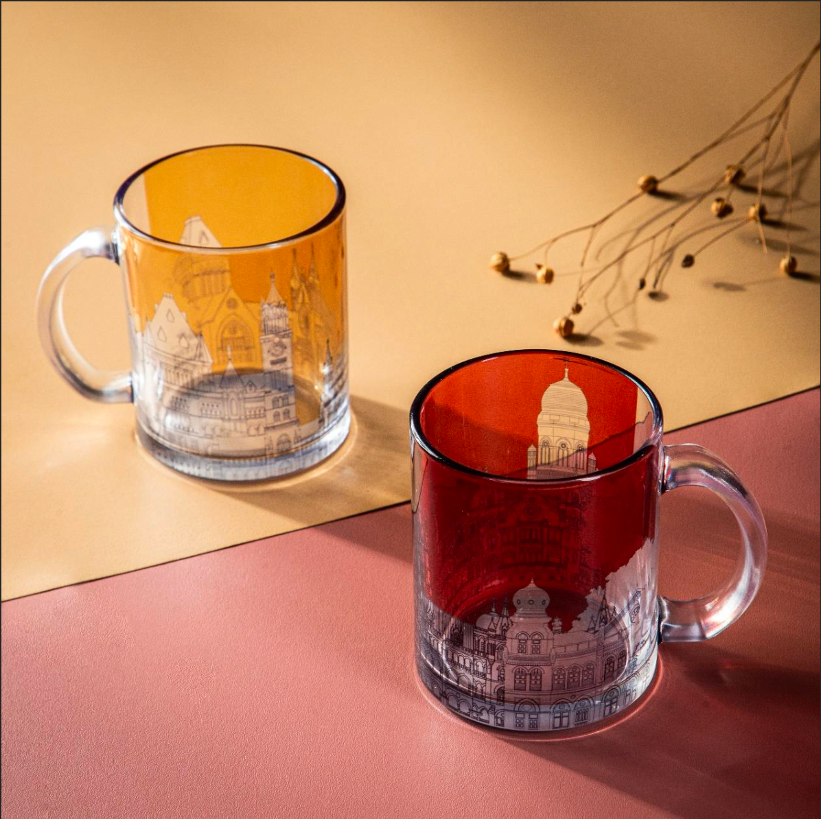 The architectural illustrations on historic Bombay blends with a modern monochrome finesse with pop colour, unconstrained by the formal boundaries of art, accentuate the beauty of this series and creates thoughtful and stylish products.