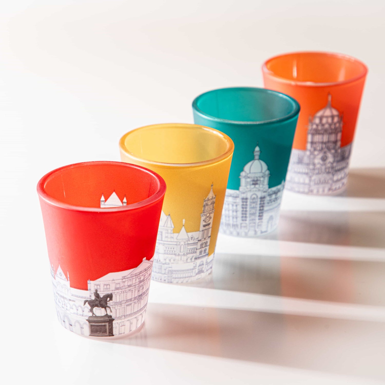 The architectural illustrations on historic Bombay blends with a modern monochrome finesse with pop colour, unconstrained by the formal boundaries of art, accentuate the beauty of this series and creates thoughtful and stylish products.