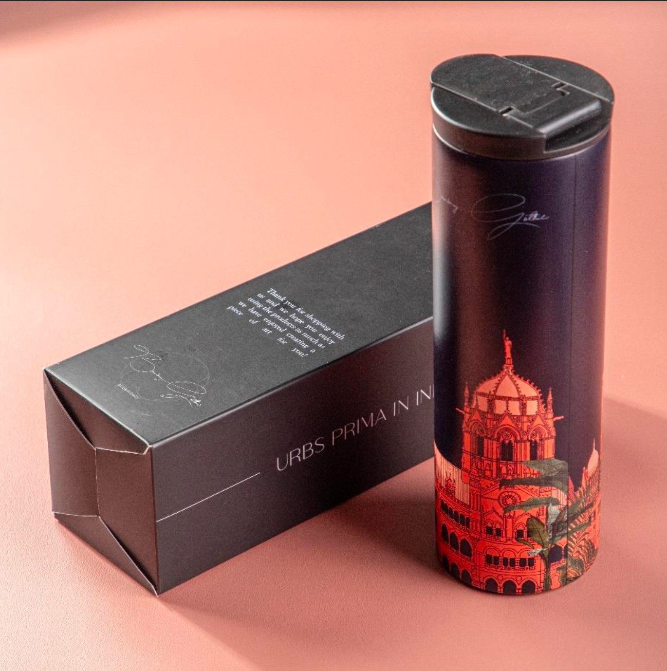 Celebrate Mumbai's proud legacy as "Urbs Prima in Indis" (First City in India) with our "Towering Tumbler" flask. This 500 ml insulated stainless steel flask artfully blends modern minimalism with classic architectural illustrations, reflecting the city's foundational heritage.
